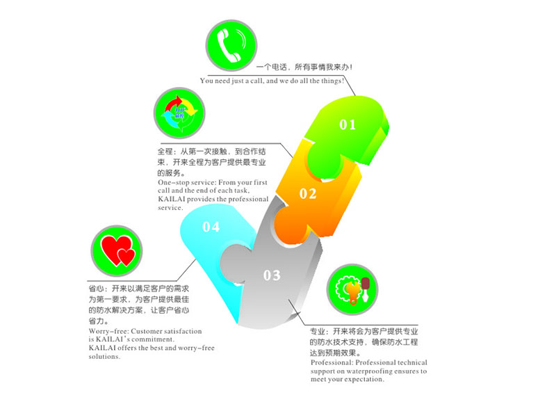 開來濕克威時刻鞭策自己在生產(chǎn)高品質(zhì)產(chǎn)品的基礎(chǔ)上通過“產(chǎn)品+服務(wù)”為客戶提供系統(tǒng)的防水解決方案。