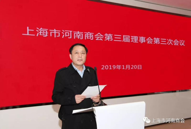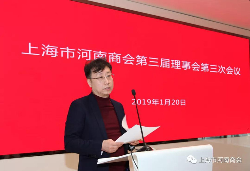 2019年1月20日下午,上海市河南商會第三屆理事會第三次會議在上海海銀金融中心會議室召開。參加會議的有商會理事成員,列席的有:部分團(tuán)體會員單位、河南籍在滬物流行業(yè)、防水防腐行業(yè)、餐飲行業(yè)的代表約90人參加。