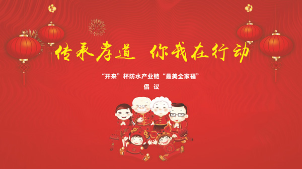 由中國建設(shè)報(bào)、中國防水產(chǎn)業(yè)鏈交流平臺(tái)主辦,由上海市化學(xué)建材行業(yè)協(xié)會(huì)建筑防水分會(huì)、河南省建筑防水協(xié)會(huì)、湖北省建筑防水協(xié)會(huì)、江西省建筑業(yè)協(xié)會(huì)防水分會(huì)、吉林省建筑防水協(xié)會(huì)、河北省建筑防水協(xié)會(huì)、海南省建筑滲漏治理協(xié)會(huì)、平輿建筑防水協(xié)會(huì)、石首市建筑防水行業(yè)協(xié)會(huì)、青島市建筑防水保溫協(xié)會(huì)、開來濕克威防水科技股份有限公司黨支部聯(lián)合承辦的傳承孝道,感恩有您!第一屆開來杯防水產(chǎn)業(yè)鏈“最美全家福”評(píng)選活動(dòng)2019年2月1日開始,于2019年3月21日落下帷幕。