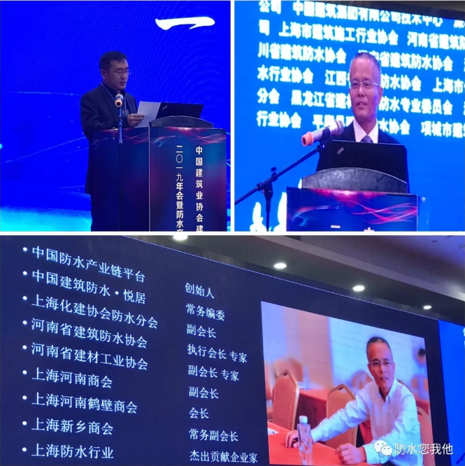 大會首先由中國建筑業協會建筑防水分會會長熊衍仁致辭;隨后中國建筑業協會建筑防水分會常務副會長兼秘書長張可文作協會工作報告;錢林弟宣讀了《建筑防水企業堅決打贏脫貧攻堅戰倡議書》;同時為新增會員企業和“入選2019年《優質工程防水材料與技術》白皮書”的企業頒發了證書。