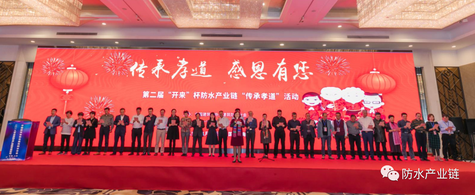 在湖北防水協(xié)會(huì)會(huì)長(zhǎng)桂春芳帶下,30位會(huì)長(zhǎng)、專家、產(chǎn)業(yè)鏈企業(yè)代表共同宣讀傳承孝道,感恩有您!第二屆“開來杯”傳承孝道,你我在行動(dòng)倡議書!