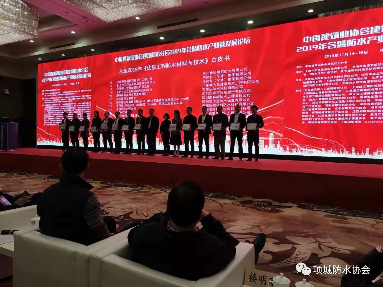 會上,還頒發了新入會會員證書和《優質工程防水材料與技術白皮書(2019版)》入編證書。防水產業鏈啟動及簽約儀式由河北省建筑防水協會會長楊際梅主持。王鐵宏、肖緒文、景萬、熊衍仁、葉琳昌、曲慧、張可文,以及河南省駐滬辦書記許春暉、平輿縣人大常委會主任禹衛東、項城市政協副主席王養嶺、上海市化學建材行業協會秘書長樓明剛,與倪貴全董事長共同啟動了防水產業鏈上線儀式。會上還舉辦了防水產業鏈平臺的簽約儀式。