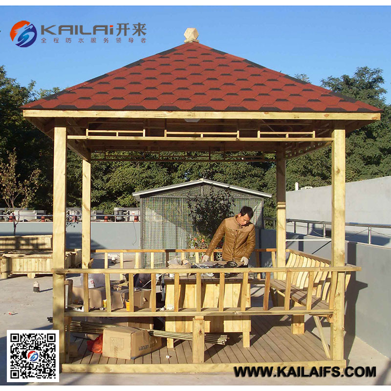 防腐木利用彩色玻纖瀝青瓦營造出的色彩繽紛的效果,讓人宛如進入童話中的世界;玻纖胎瀝青瓦可以適應(yīng)各種形狀和要求的防腐木屋面,打造出設(shè)計師想要的效果;利用瀝青瓦,可以讓防腐木屋面和墻面顏色配比優(yōu)化,打造天人合一的境界。