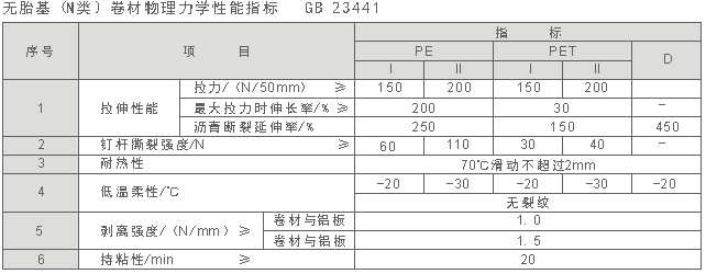 預鋪/濕鋪自粘防水卷材技術指標