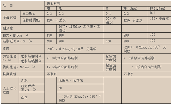 注:上表面材料為PP膜時,執行Q/ICJE16-2005標準
