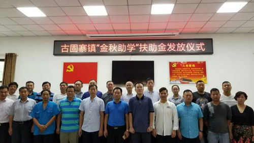 近日,開來集團董事長倪貴全參加了在古固寨鎮史屯村委會會議室舉行的“金秋助學”扶助金發放儀式,出席本次會議的人員還有古固寨鎮黨委書記楊牧、鎮長范曉哲、鎮黨委副書記、人大主席楊榮華、政府常務副鎮長高黎偉、鎮黨委委員張梅、著名歌手冷漠及其他企業家、各界愛心人士。